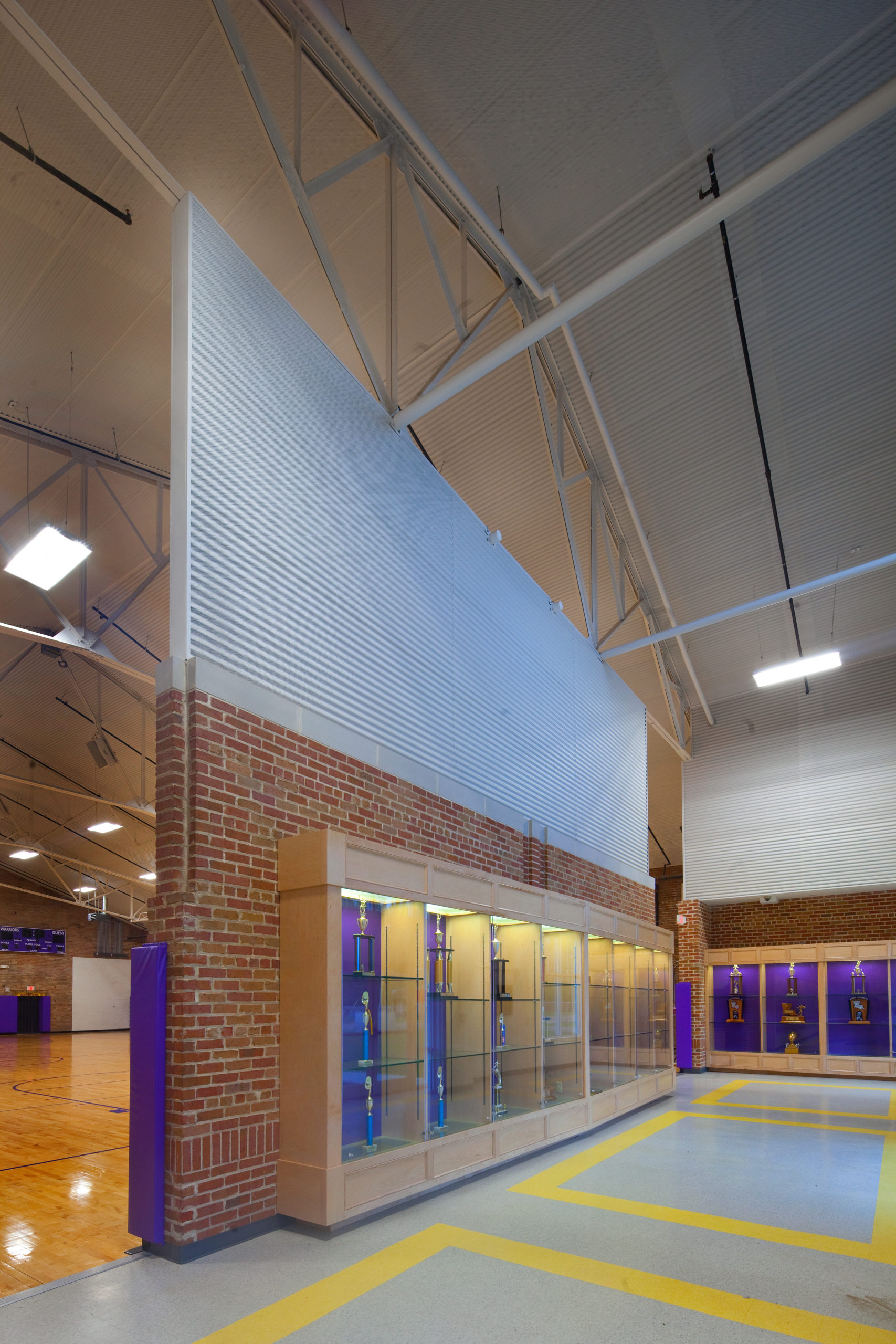 The historic gymnasium, originally built in the 1930’s, had seen a lot of use over the past 80 years. Despite the numerous achievements of state championships & accolades, the facilities had seen better days. The building had endured several renovations, including many of the original historic windows being infilled with masonry. Although the seating capacity was large, the locker rooms and support facilities located beneath the seats were inadequate and the seating was not ADA accessible.