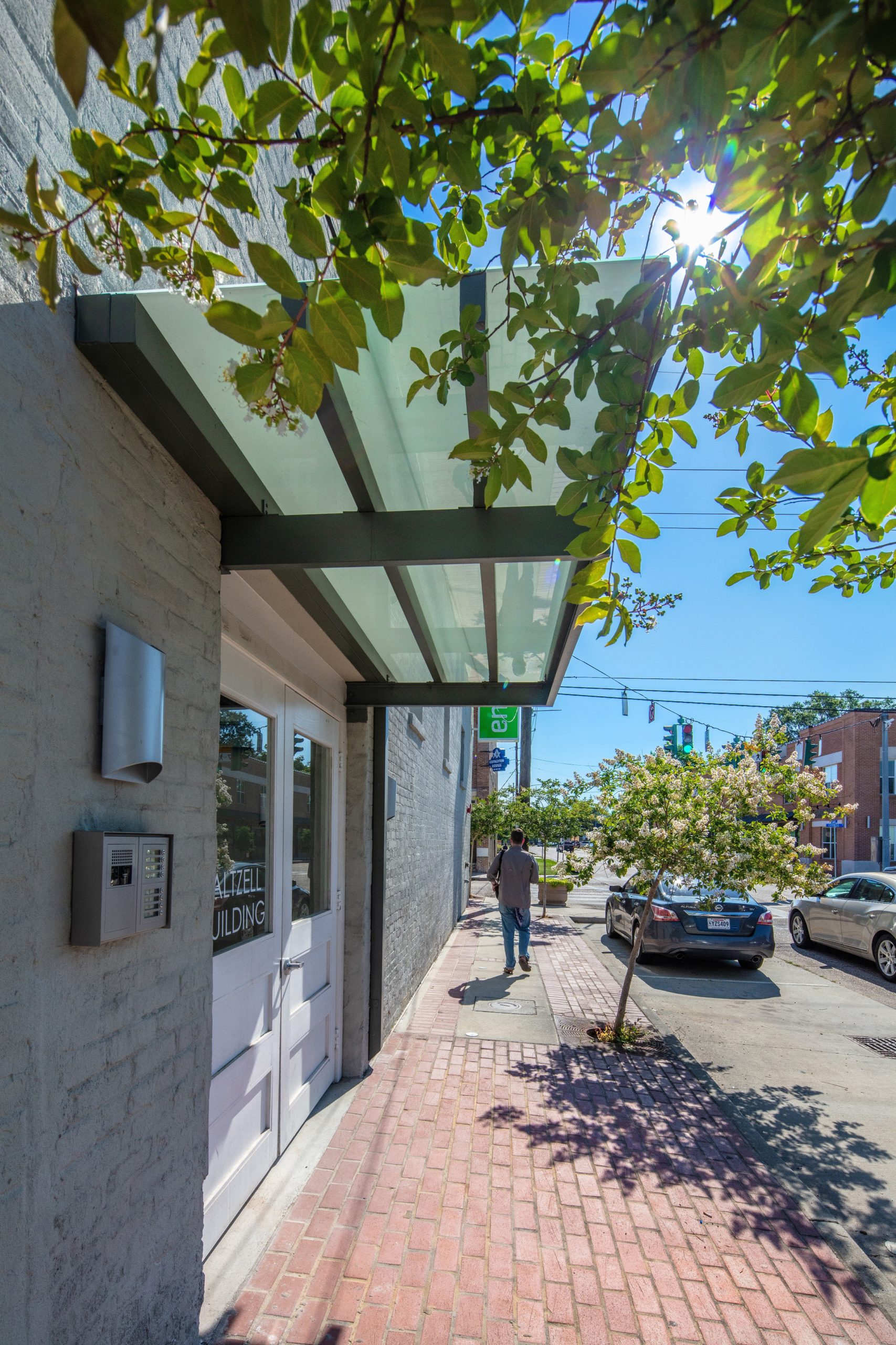 With the new renovation to the Baltzell Building, the fourth bay was restored to its original character, which included reconstructing the storefront windows, canopy, and the brick masonry wall above. The original cast-iron columns in the fourth bay were salvaged after the fire and were restored and reinstalled as well. Reconstructing the façade of the fourth bay completes the building’s edge along Cypress Street.