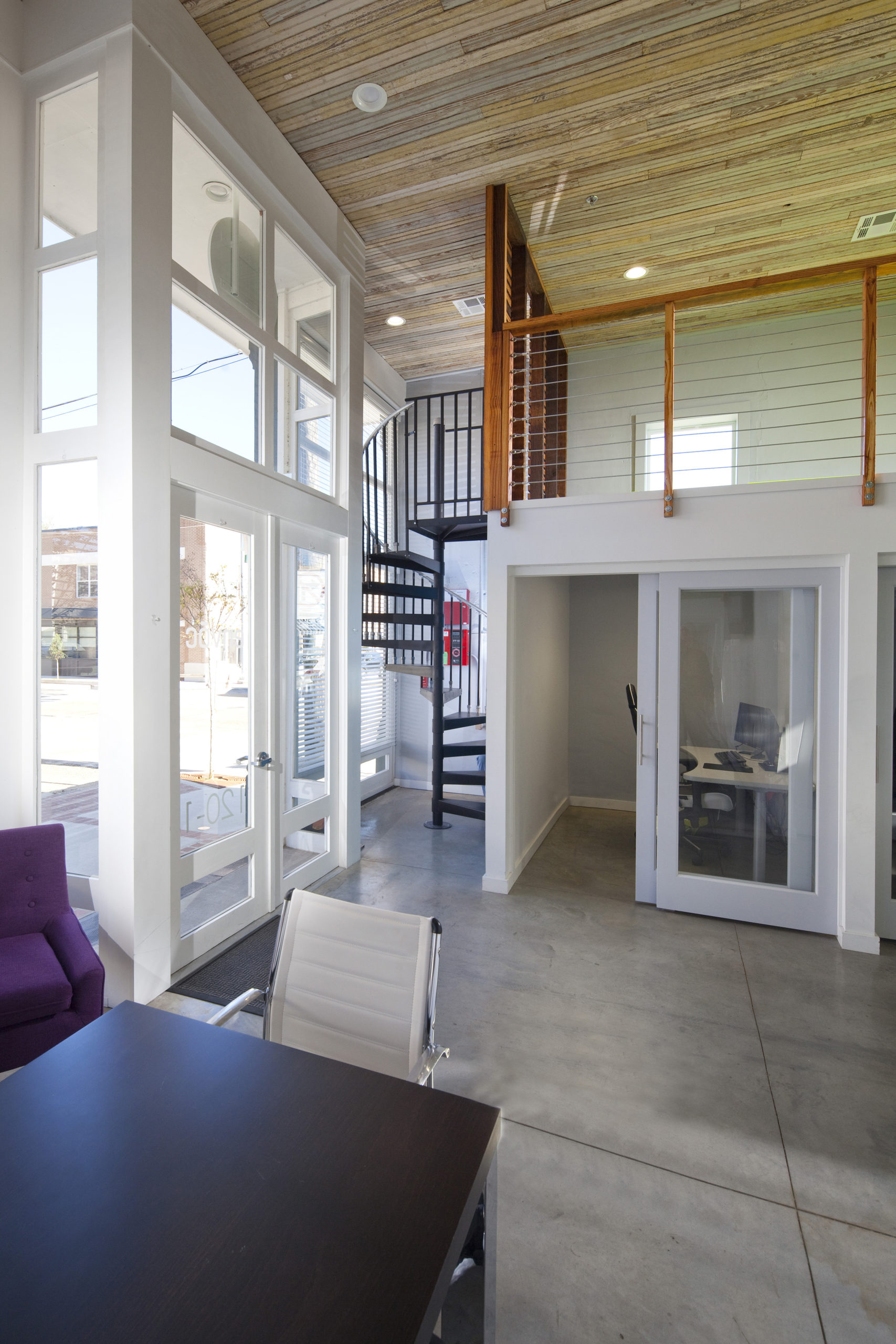 All of the units have sealed cast-in-place concrete floors on the first floor with bamboo flooring on the second floor, and the interior brick masonry walls are finished with cement plaster. The renovation of the Baltzell Building will help to foster the expansion of Hammond’s downtown in the southerly direction.