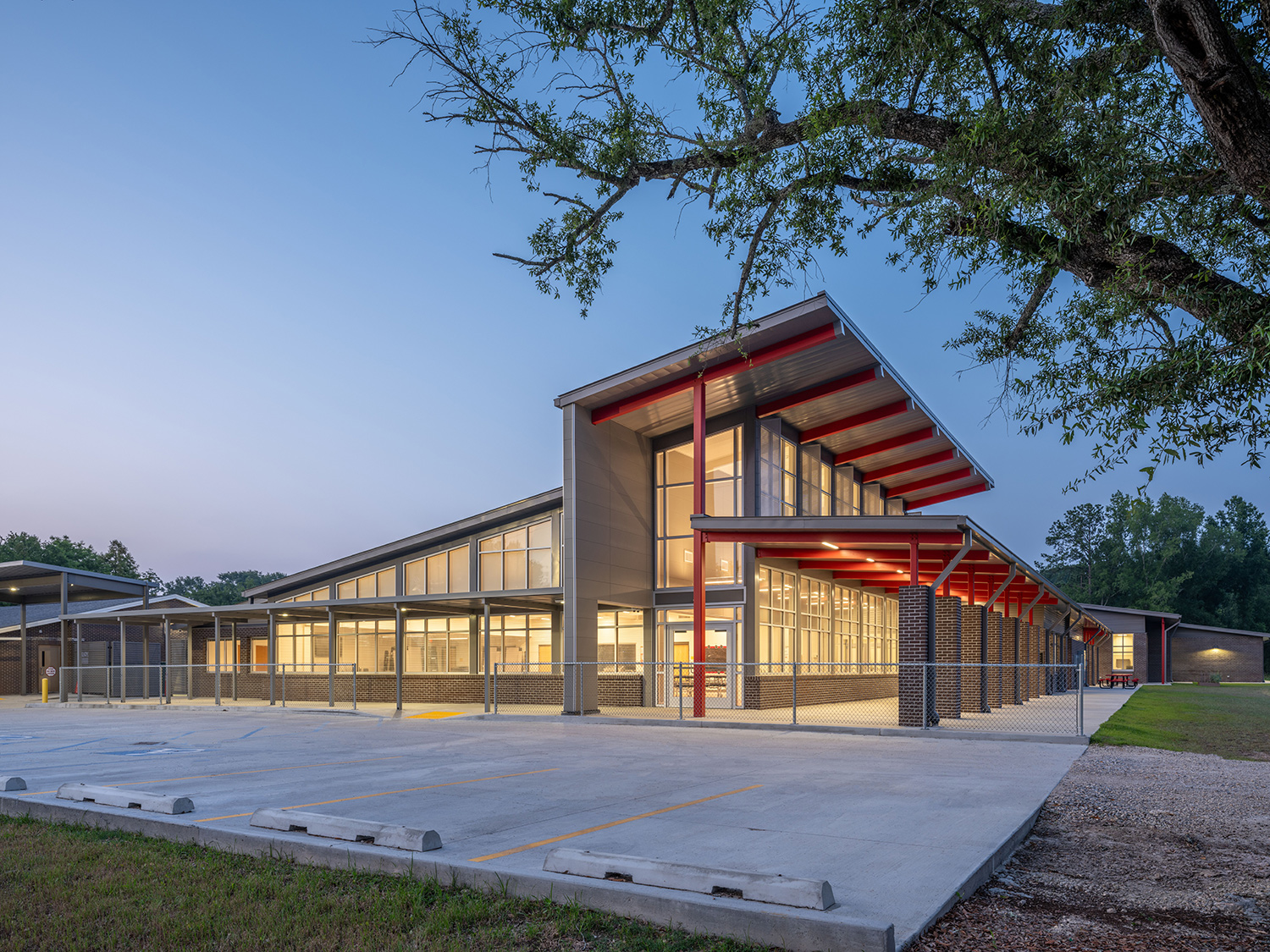The Champ Cooper School Classroom building is a 22,060 sq. ft. one-story building that is the first of three phases to the school campus. The building consists of two separate hubs with five classrooms within each hub, totaling ten classrooms. Each hub has an interior shared project collaboration space and an exterior shared collaboration space. The primary objective of the design of both the interior and exterior collaboration spaces is to promote additional learning opportunities and enhance and enrich the educational needs of middle school students by providing space for experiments or activities. Additionally, the building contains a dining commons area with a serving kitchen, a special education classroom, two teacher work rooms, a reception area, and two offices for administrative staff. The building was designed for natural light to be incorporated into each space, which allows students to access daylight to improve and positively contribute to the student’s academic performance.