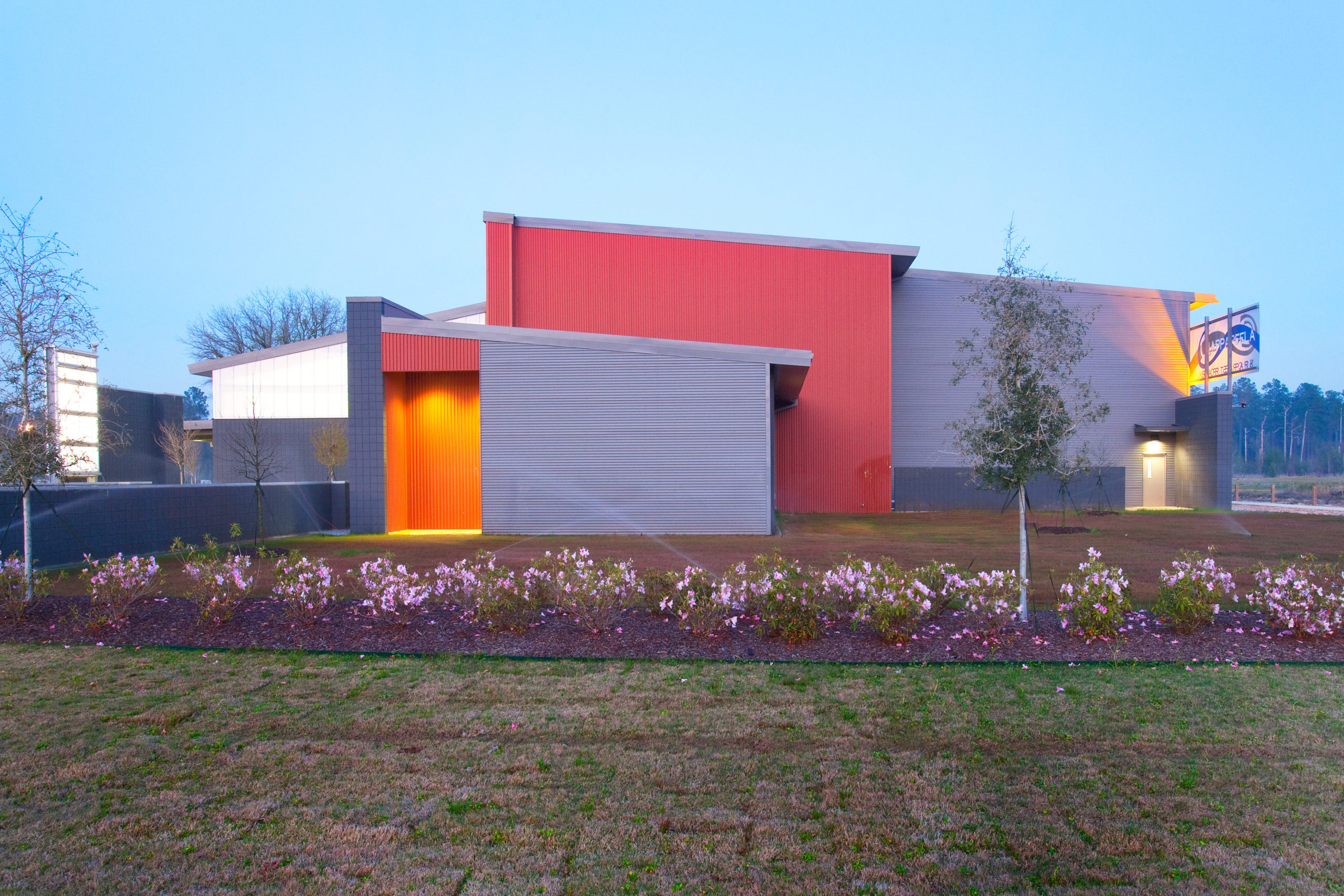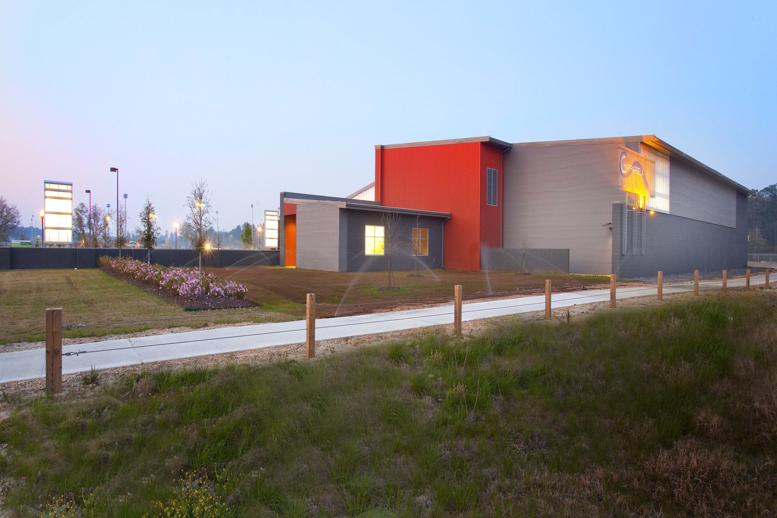 The project consists of multiple buildings for a newly developing multi-discipline 80-acre sports and recreation complex. A double gymnasium with administration areas, concessions and classroom facilities is situated at the entry to the complex, establishing an axis through the development. Multiple concessions and restroom combination facilities are designed to create visual way finding cues along this access. A maintenance building was designed to accommodate all of the grounds-keeping needs.