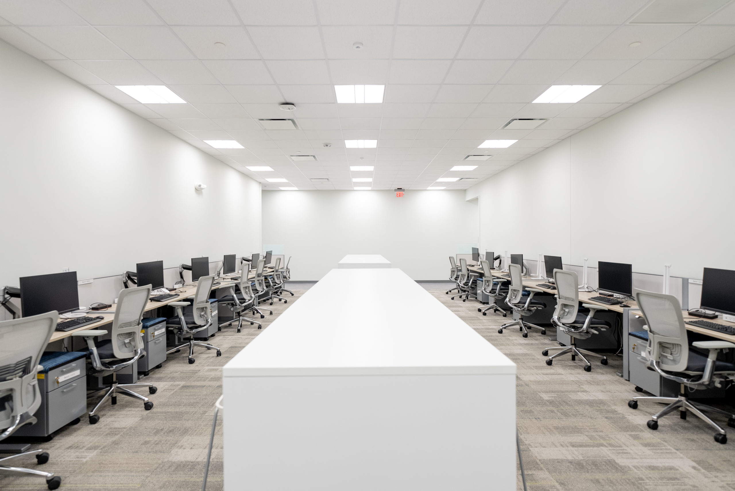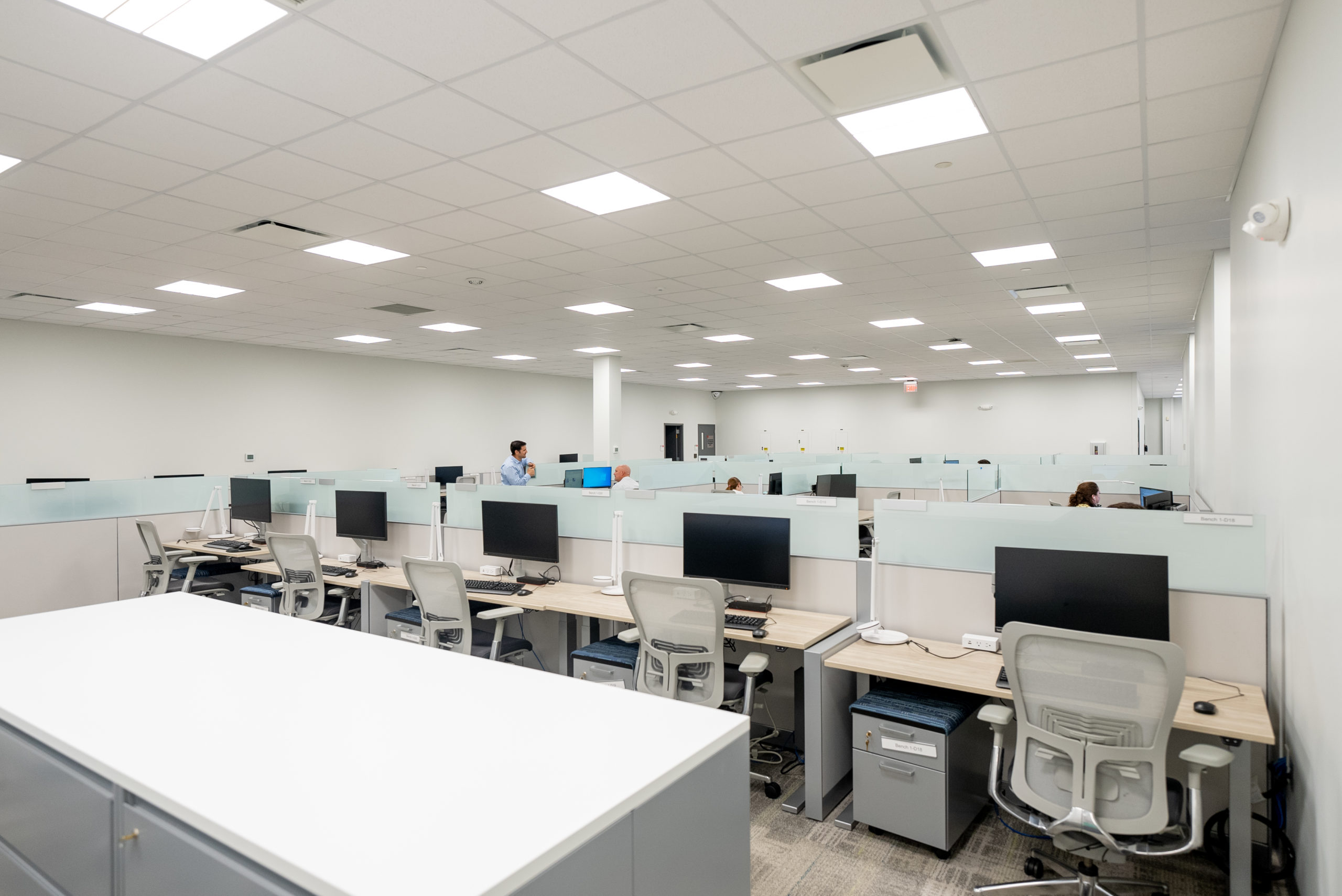 The Aerosol Building is a former warehouse with very few windows. The new plan removed most of the interior walls, increased the size of the large training room, replaced all floor, wall, and ceiling finishes, replaced all millwork, integrated adequate electrical for technology, and upgraded the existing restrooms. The result is a vibrant, open space that allows both hybrid and non-hybrid work styles, accommodates meetings of all sizes, and promotes collaboration.