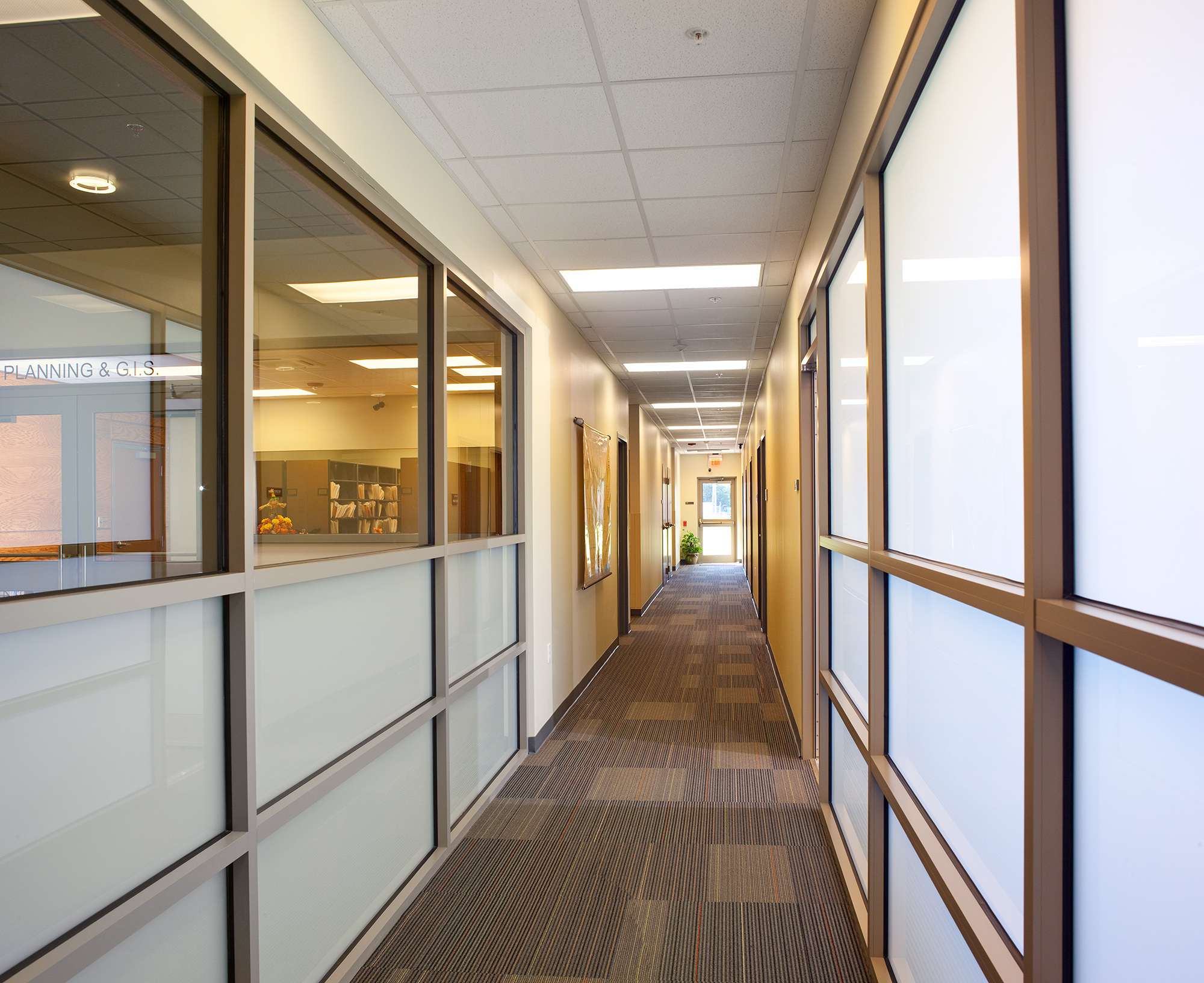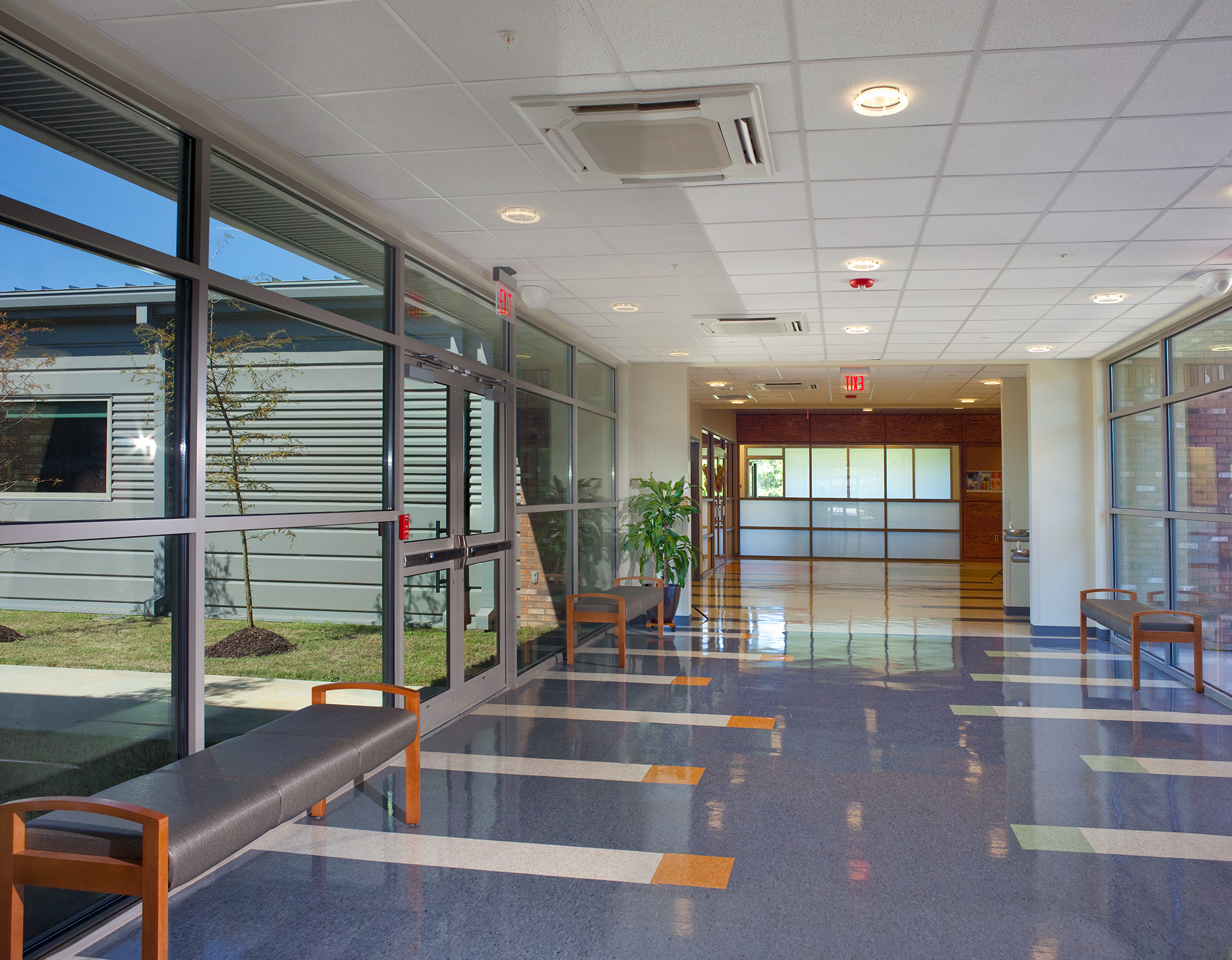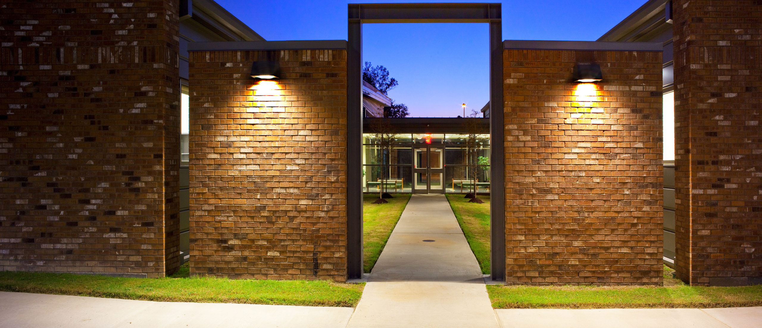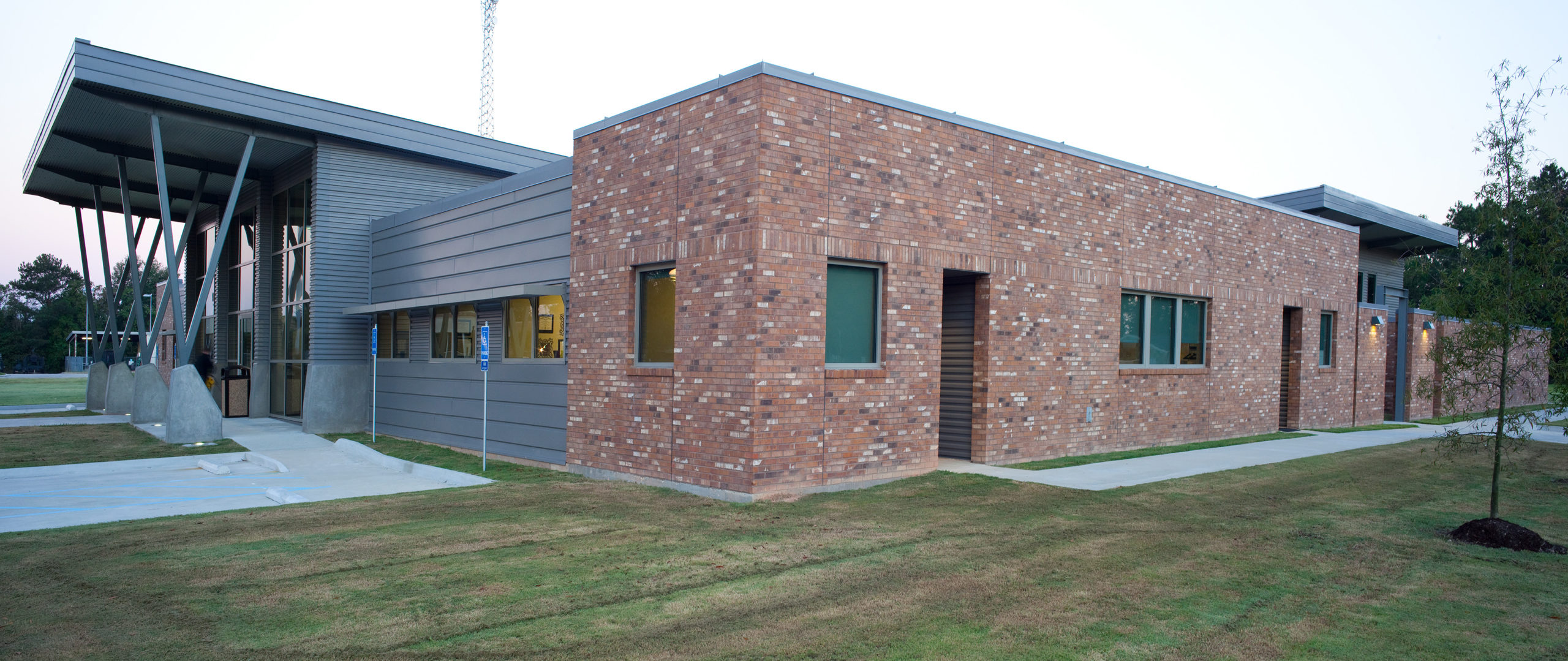 The 18,980 sq. ft. Environmental Services Building houses the Tangipahoa Parish Government’s headquarters for the departments of Building Permitting, Planning, and Environmental Health. The building is subdivided into three main areas which correspond to the three departments. The large volume entry space is flanked on two sides by Building Permitting and Environmental Health and leads visitors to the Planning Department and a large multi-purpose meeting space. The new building is on axis with the existing South Tangipahoa Parish Health Unit which was also designed by Holly and Smith Architects in 1997.