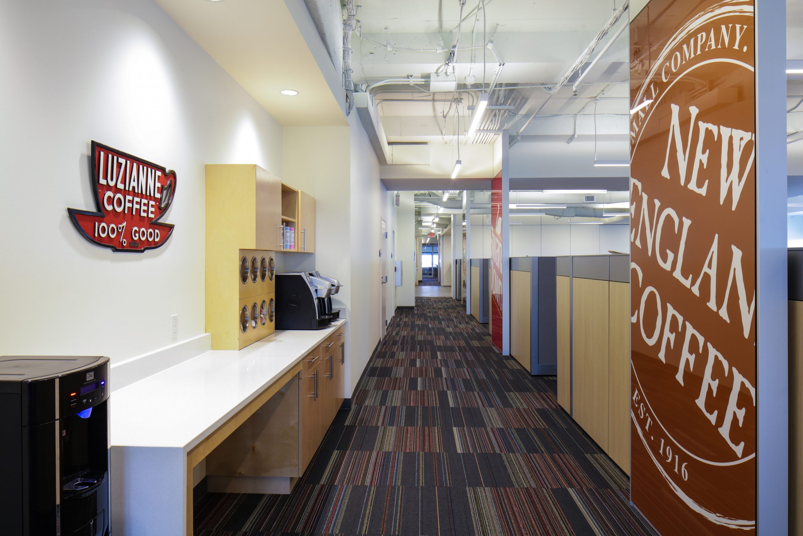 The Reily Foods Co. interior tenant build-out in New Orleans was a substantial move for the company previously housed in the same historic building for over 100 years. Reily Foods Co. wanted to utilize a progressive design approach that encouraged collaboration while also bringing the 100-year-old company into the 21st century. This interior tenant build-out provides a progressive design approach while being sensitive to the company’s history by incorporating the history of the company into the design of the new space.