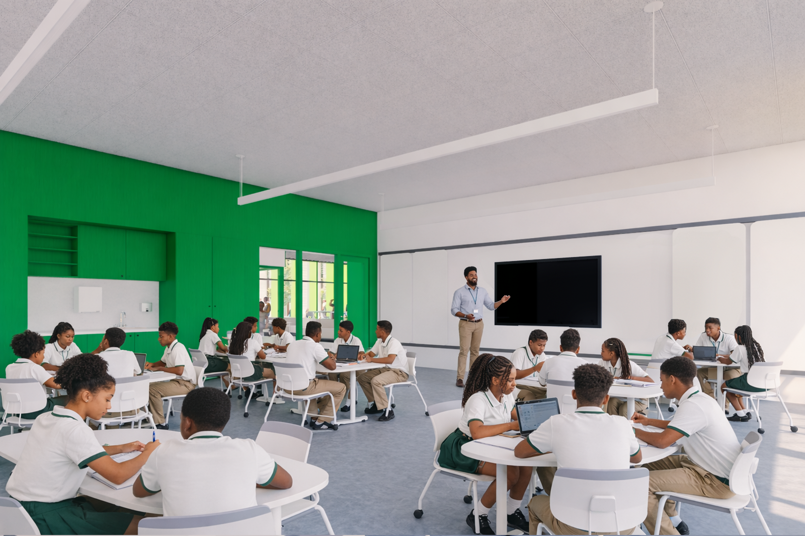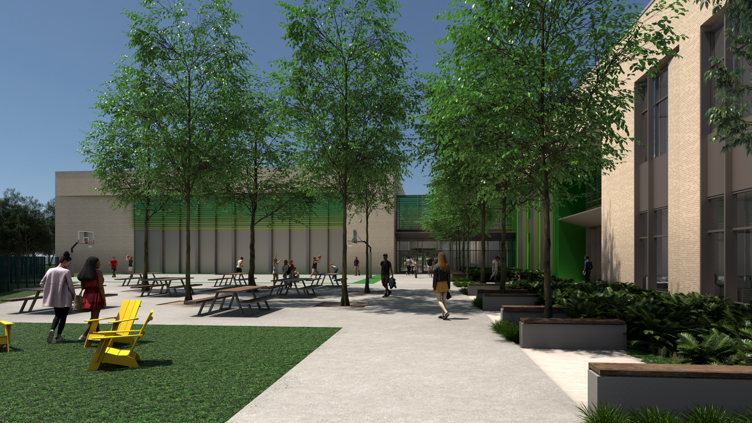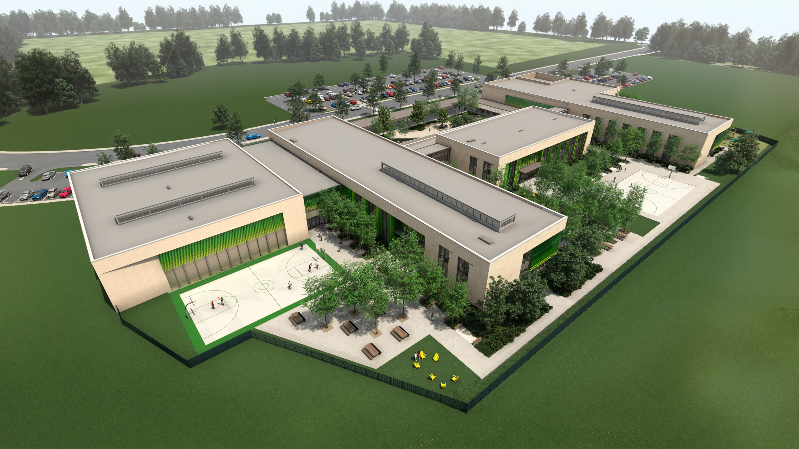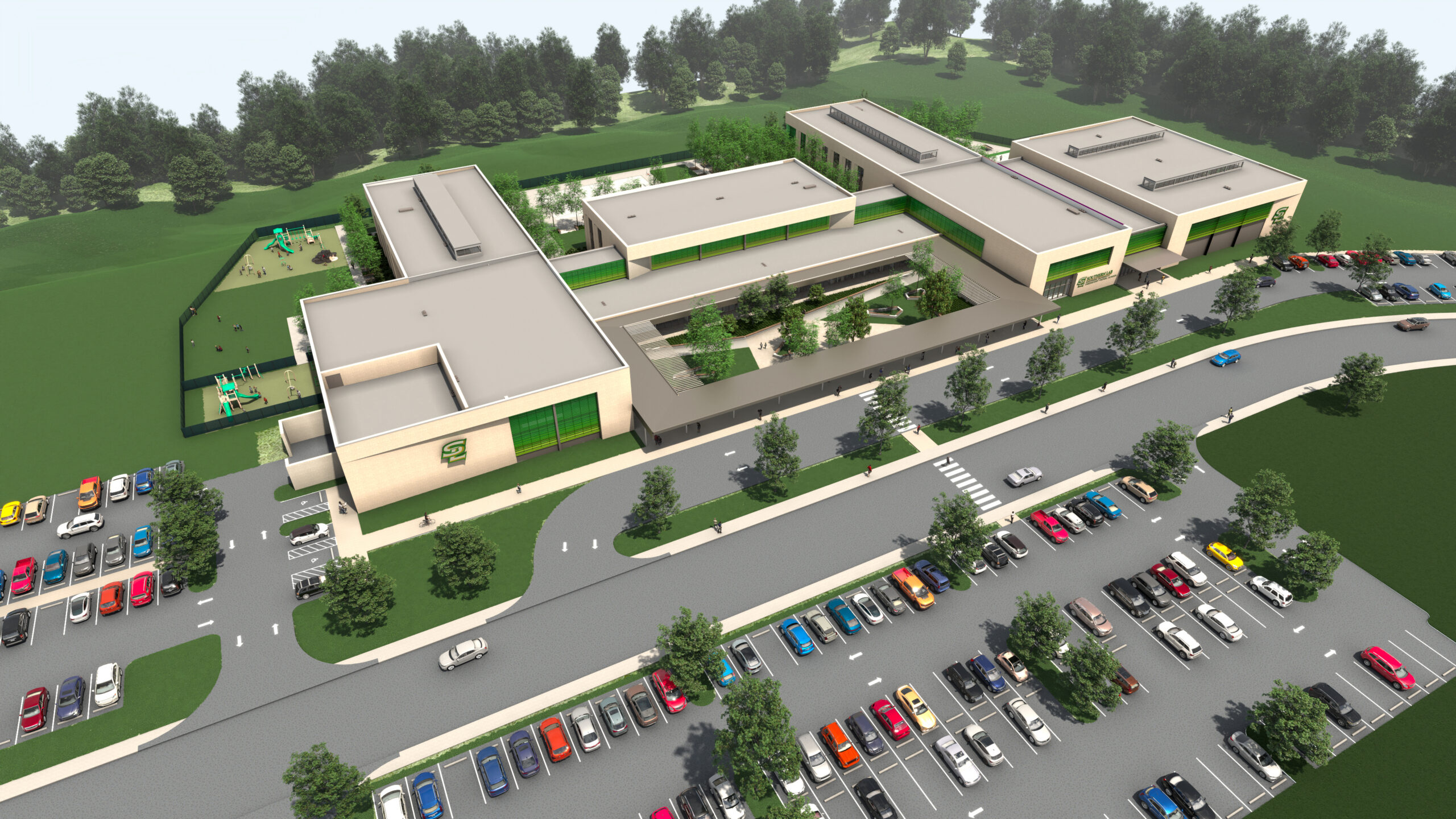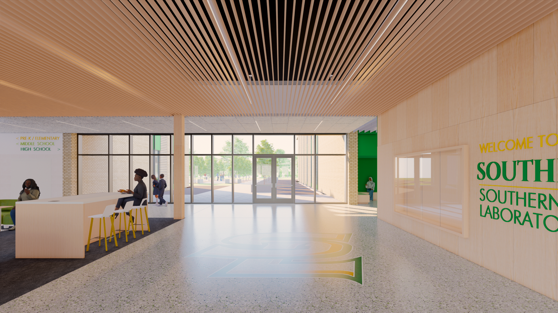 The project is the first phase of a larger master plan for the site. In the future, the existing school on Swan Avenue will be demolished to make way for a dedicated athletic campus, featuring a football stadium, baseball stadium, track, alumni walk, associated parking, and a new field house with restrooms and concessions. Together, the academic and athletic facilities will form a unified, future-ready campus that reflects Southern Lab’s legacy and propels its mission forward.