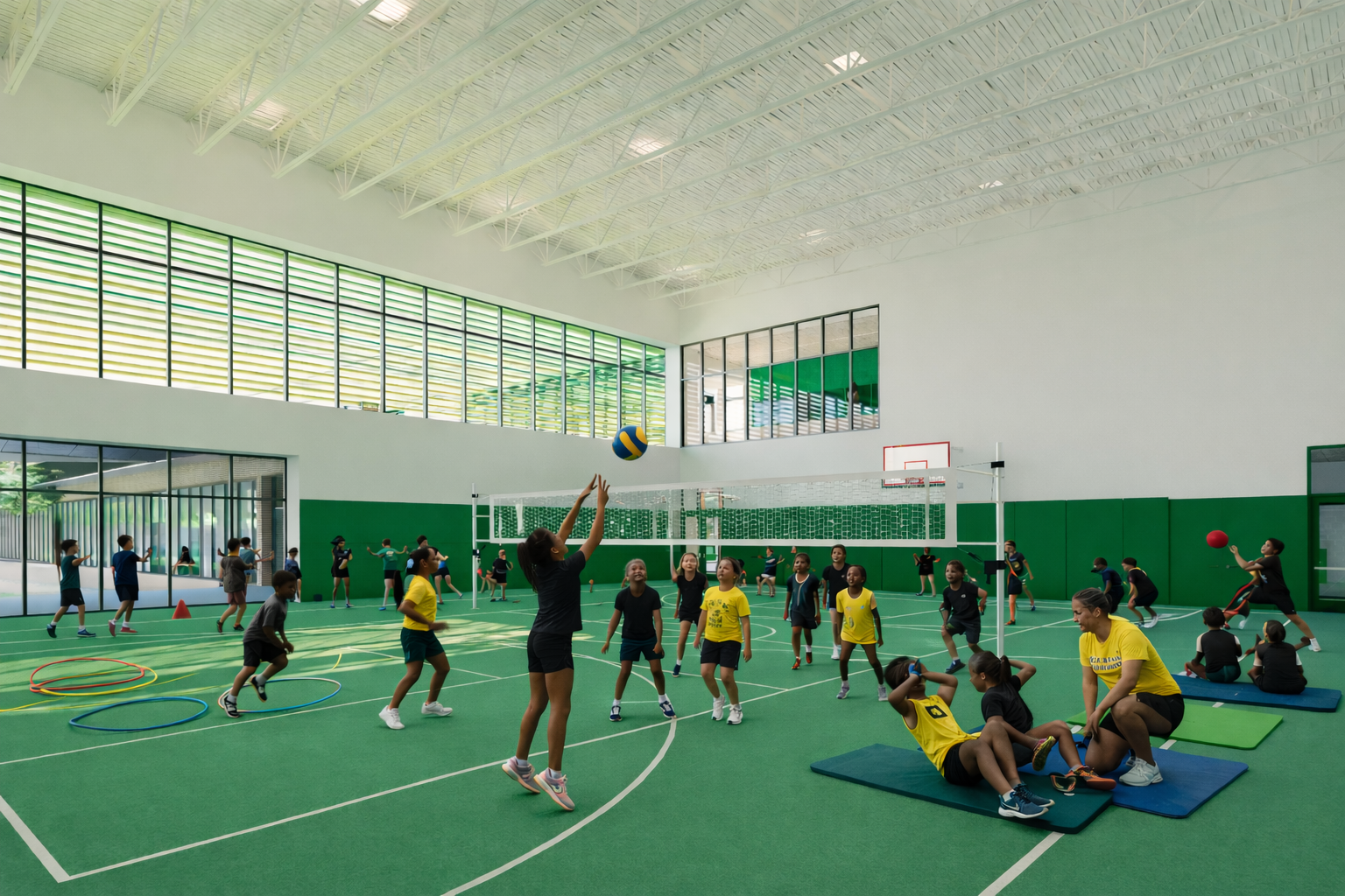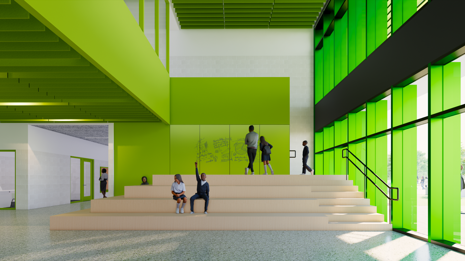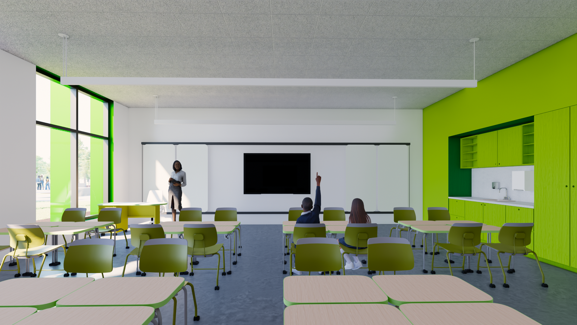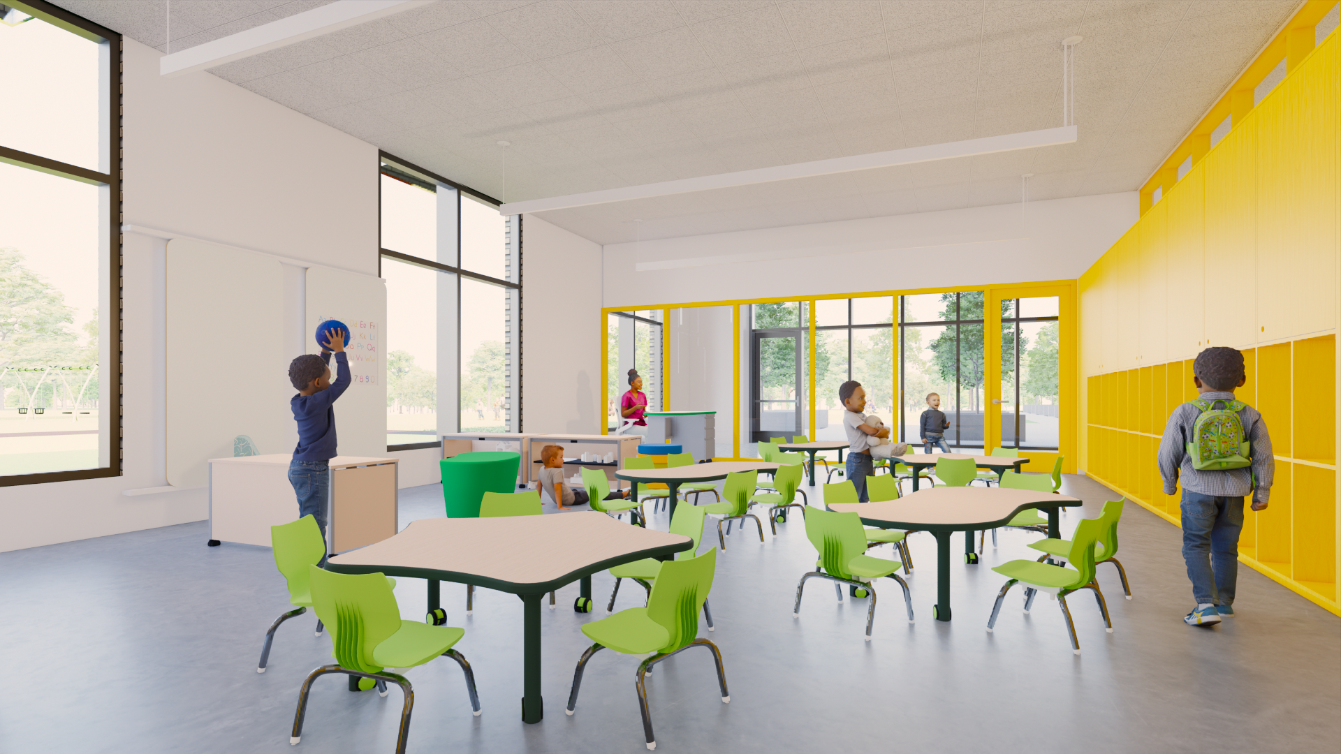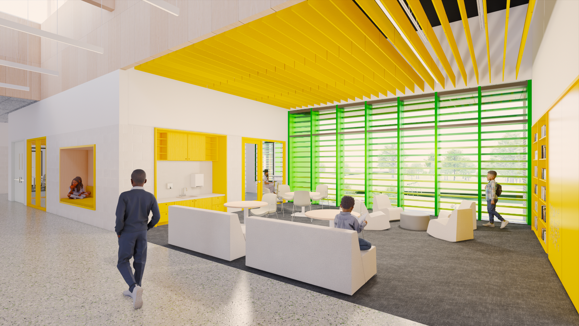 Sustainability is embedded throughout the project. The design leverages solar orientation for daylighting, employs durable and environmentally conscious materials, incorporates bioswales and native landscaping, and prioritizes indoor air quality. The building itself is envisioned as a teaching tool demonstrating best practices in wellness, stewardship, and environmental design.