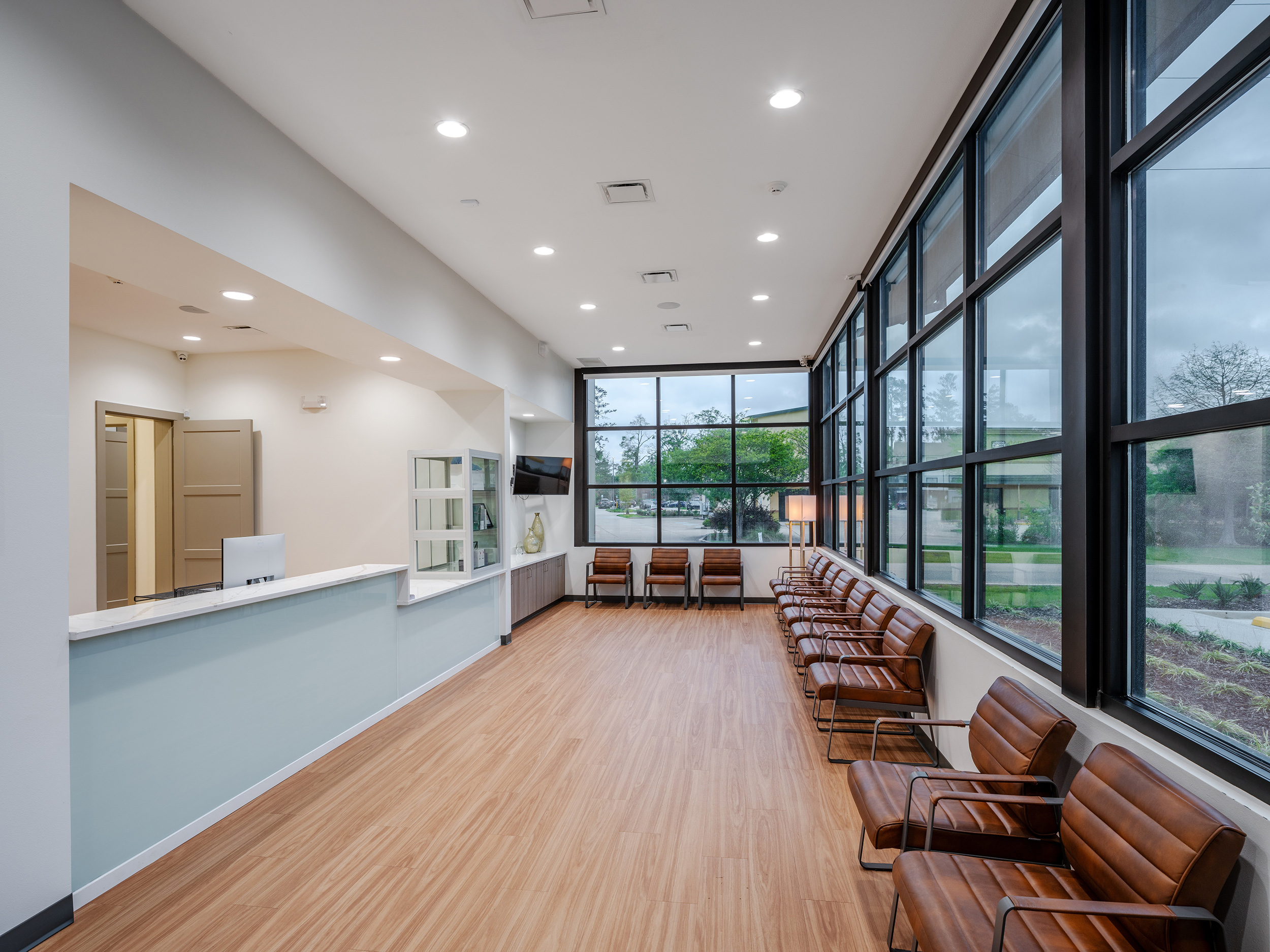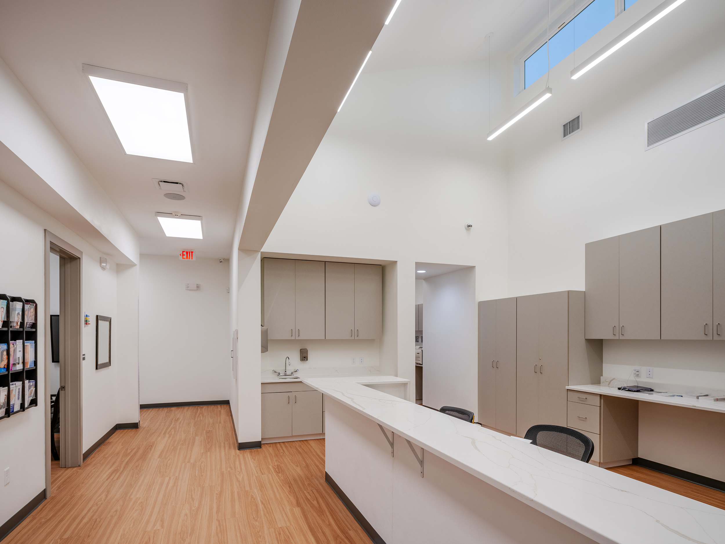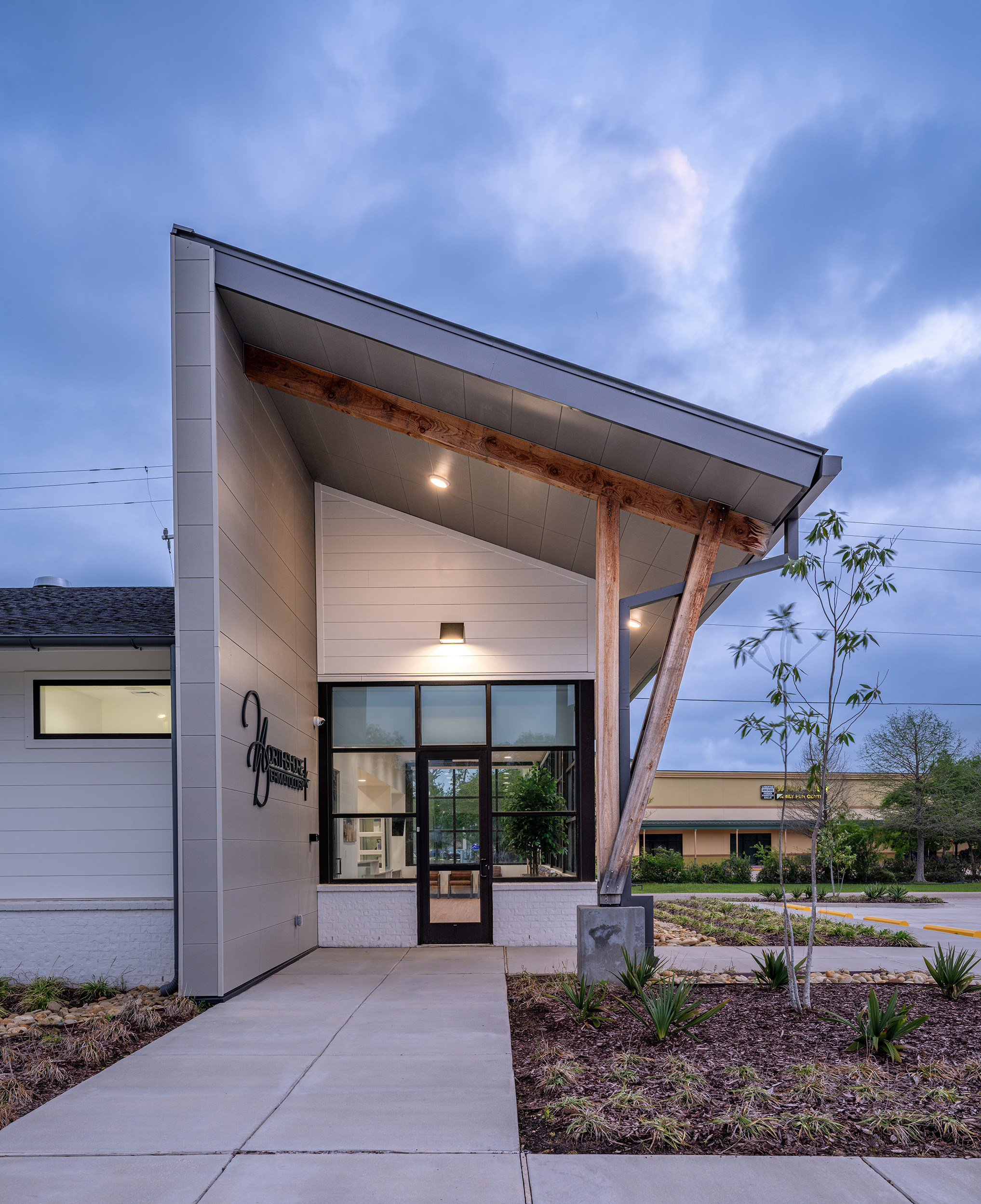 This new multi-tenant commercial development includes a 3,800 sf dermatology office while also providing an additional 1,380 sf of tenant build-out space for a future business. Designed with both functionality and aesthetics in mind, the building features a timeless architectural palette that blends seamlessly into the surrounding context. The combination of painted brick, fiber cement siding, and expansive glazing creates a modern yet inviting façade that sets the stage for a premier healthcare practice. The building program required a welcoming and spacious lobby, centralized nurse’s station, lab, doctor’s office, treatment rooms equipped with the latest technology, and a spa treatment wing designed to promote relaxation and rejuvenation.
